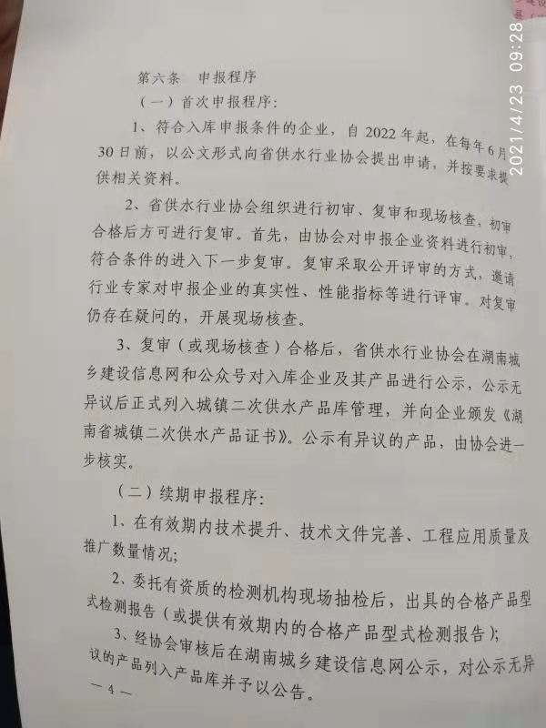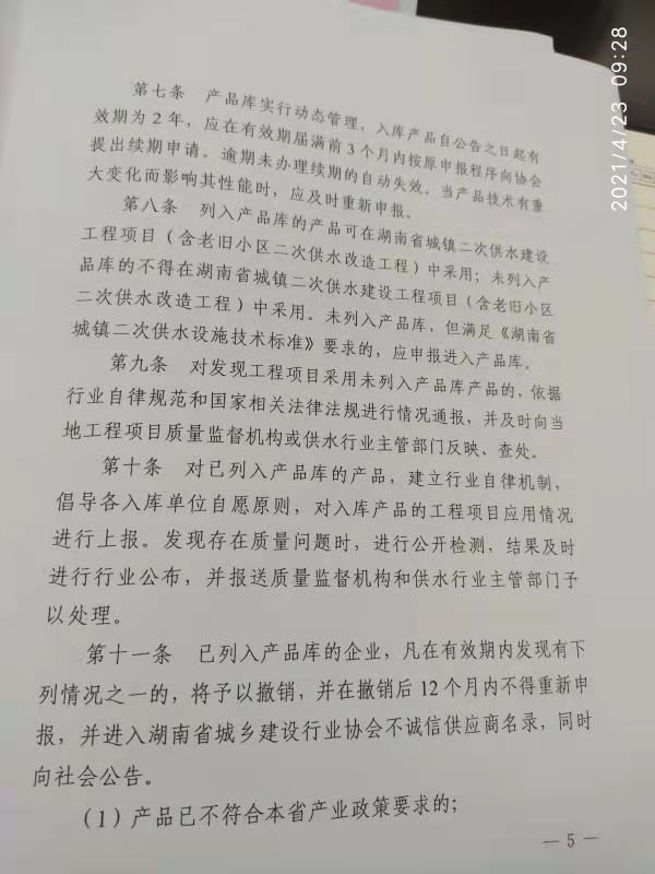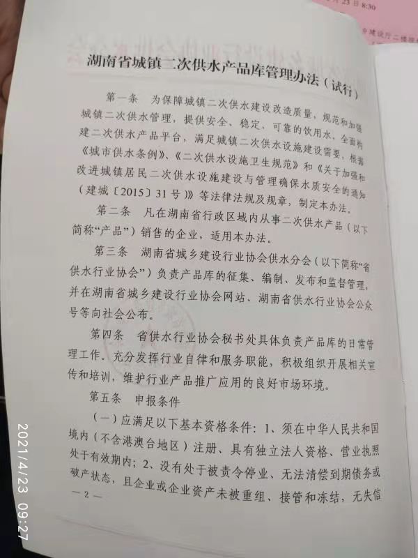 關于印發《湖南省城鎮二次供水產品庫管理 辦法(試行)》的通知